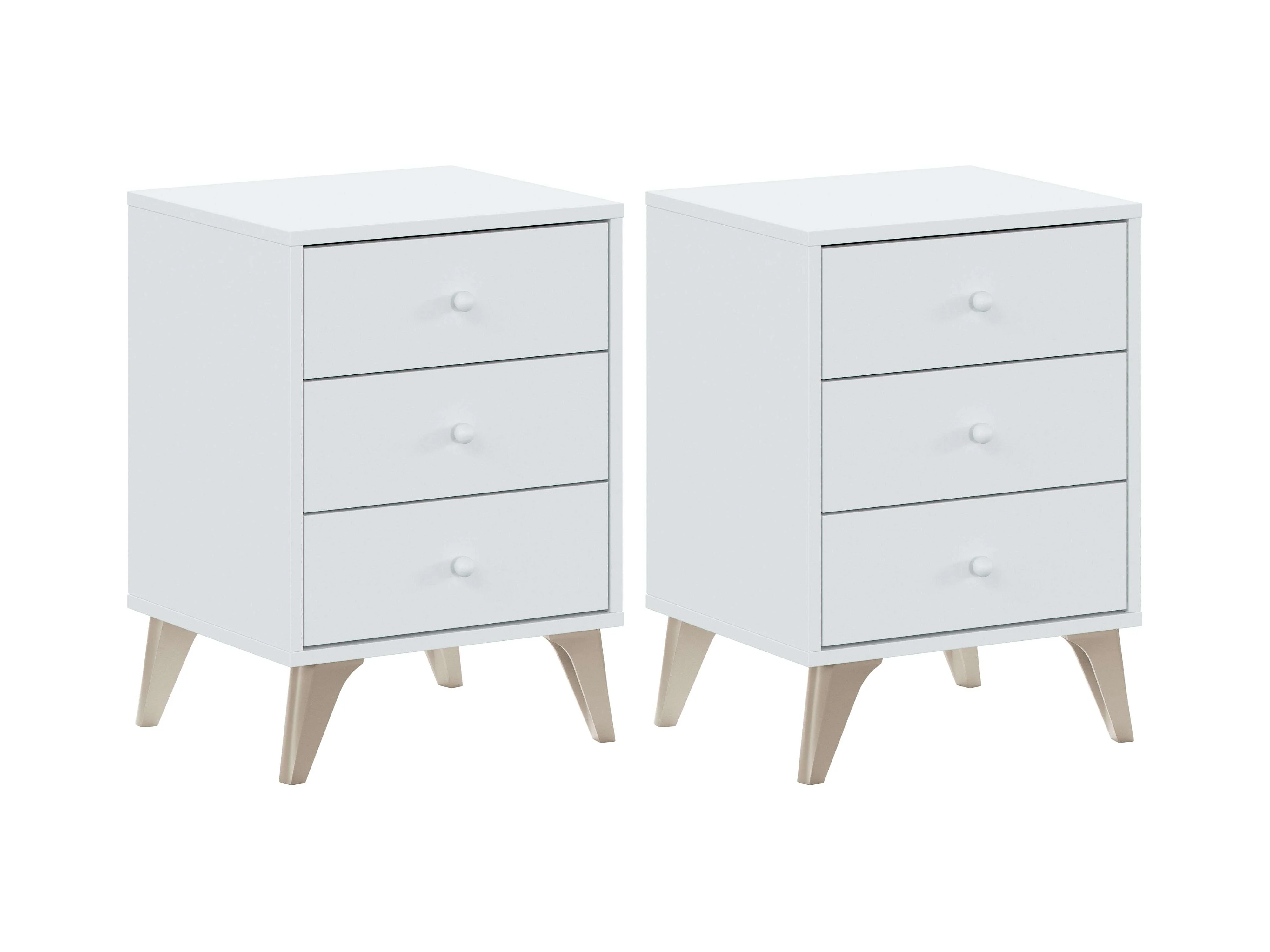 Set 2 Mesitas de noche Sweet 3 cajones blanco artik diseño moderno 56x40x33,5cm