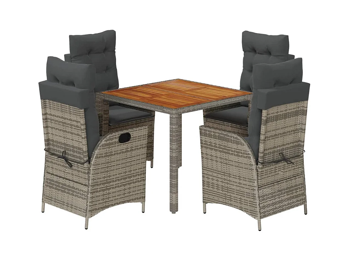 Set comedor de jardín 5 piezas con cojines ratán sintético gris