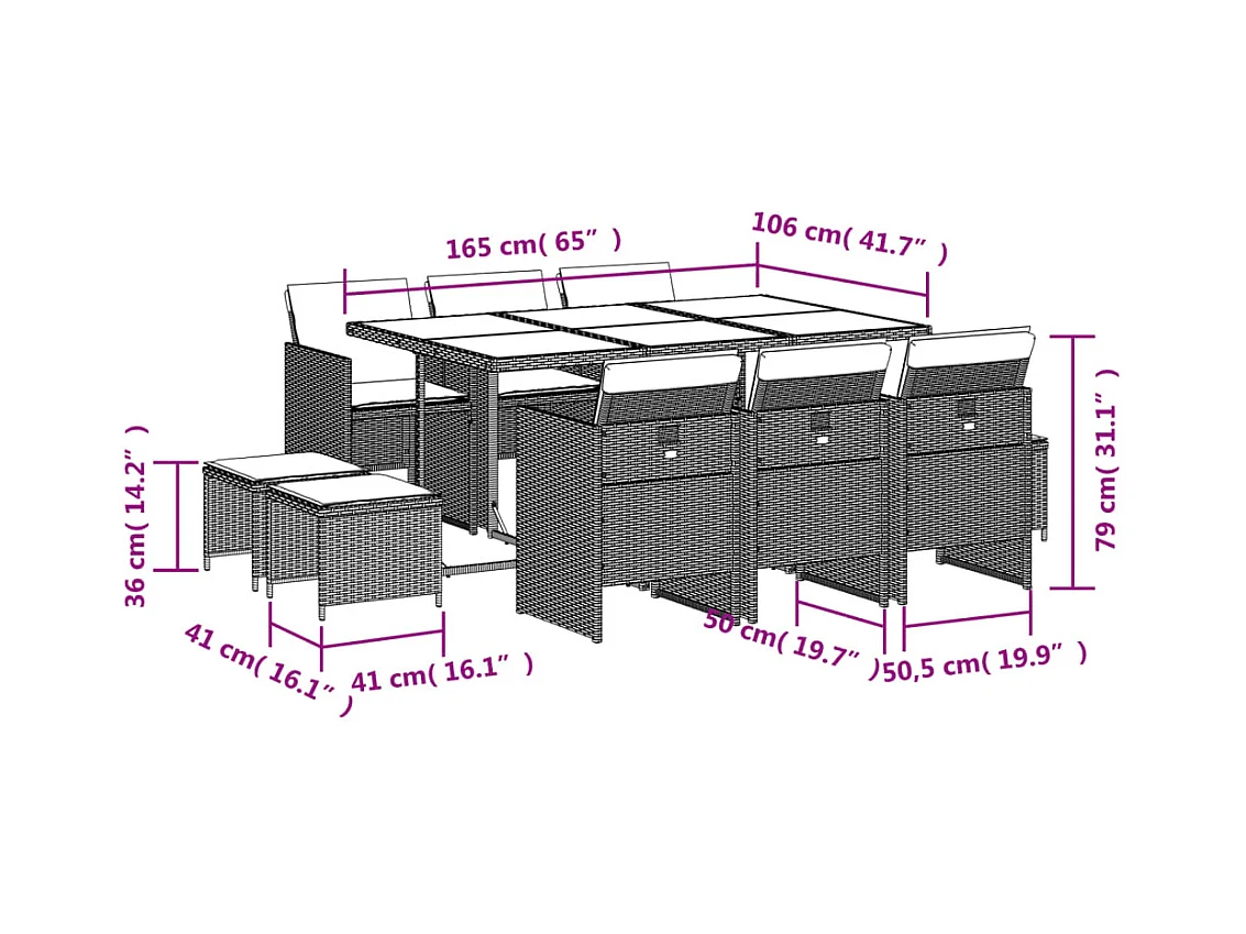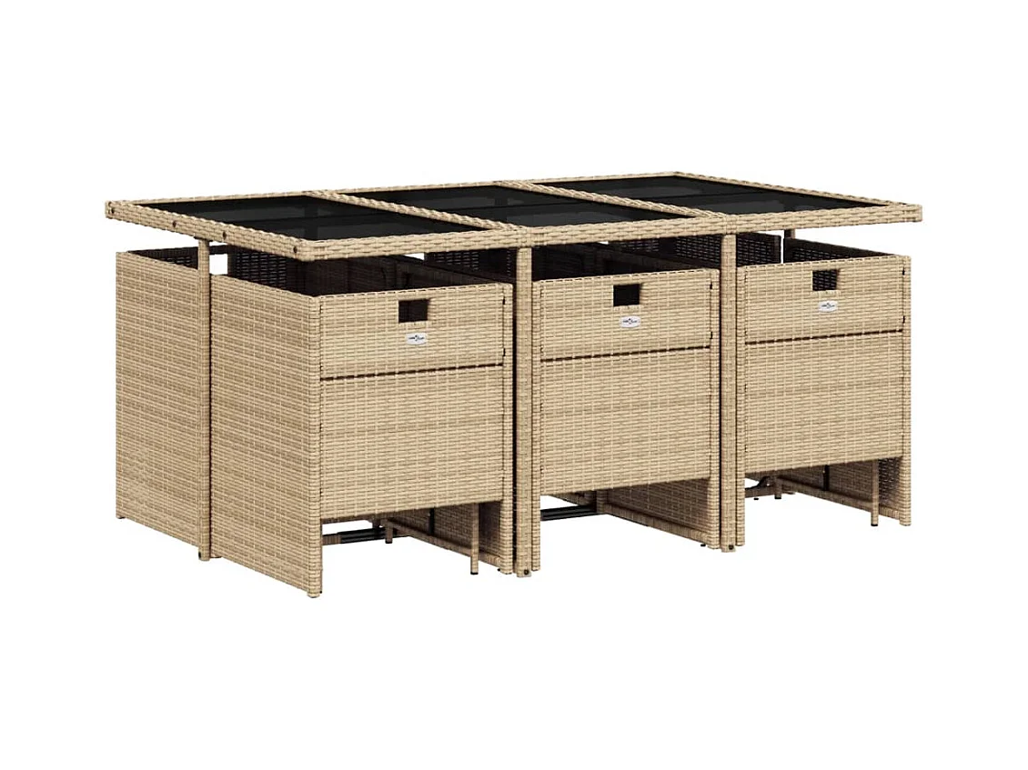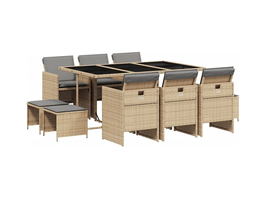 Set comedor de jardín 11 piezas con cojines ratán sintético beige