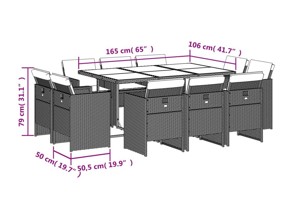 Set comedor de jardín 11 piezas con cojines ratán sintético beige