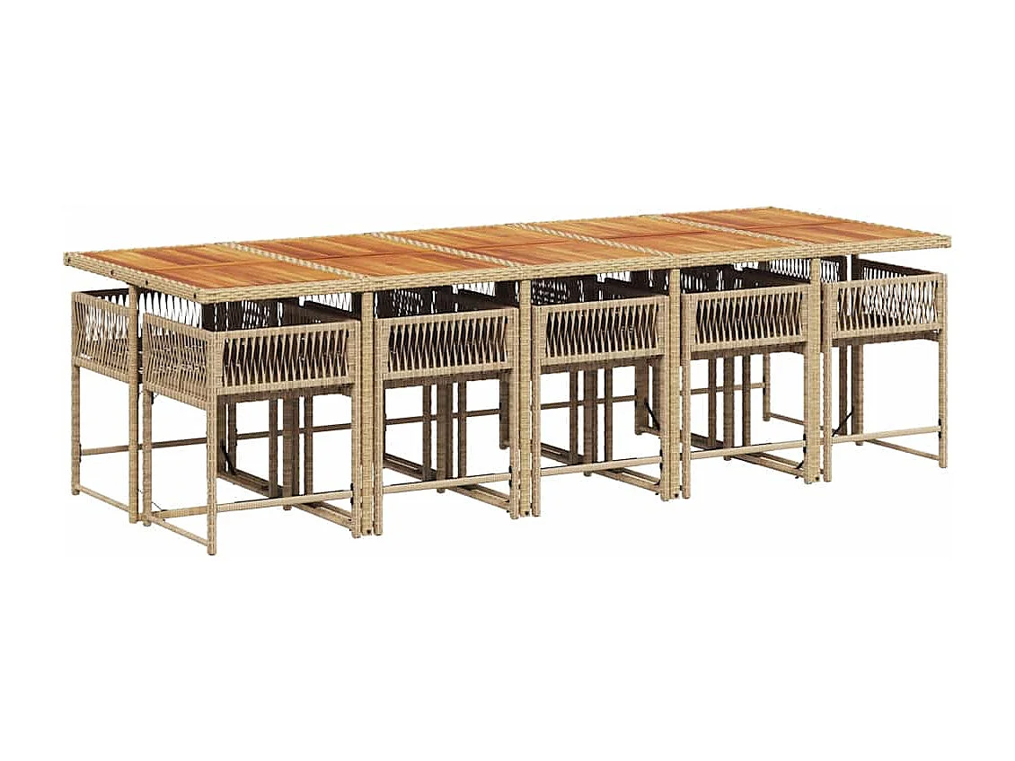 Set comedor de jardín 11 piezas con cojines ratán sintético beige