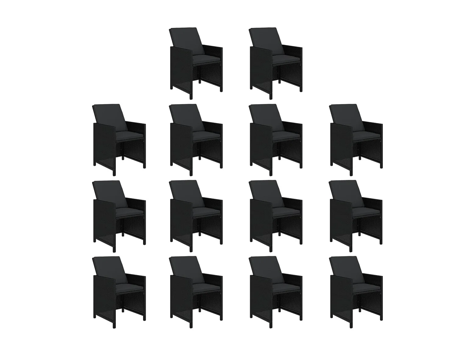 Set comedor de jardín 15 piezas con cojines ratán sintético negro