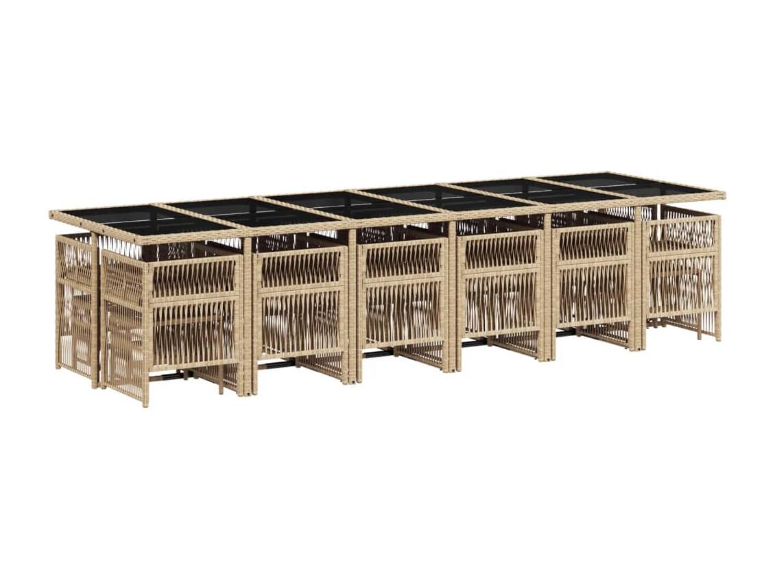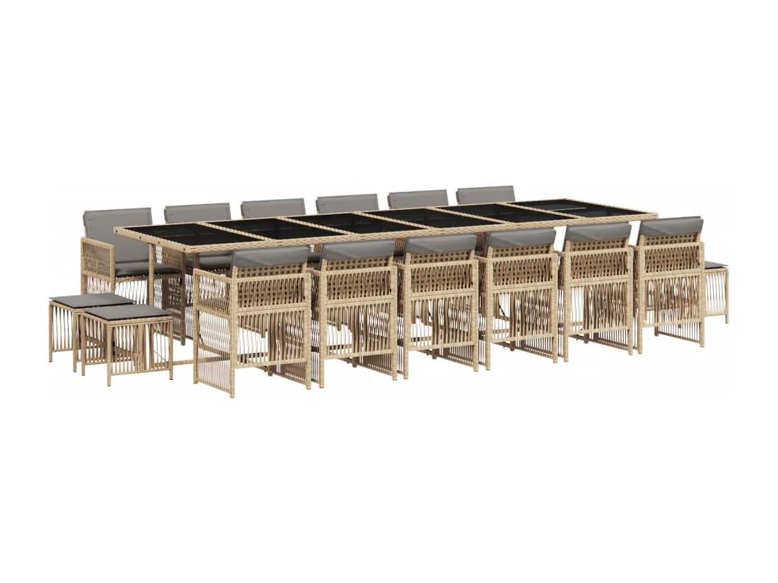 Set comedor de jardín 17 piezas con cojines ratán sintético beige