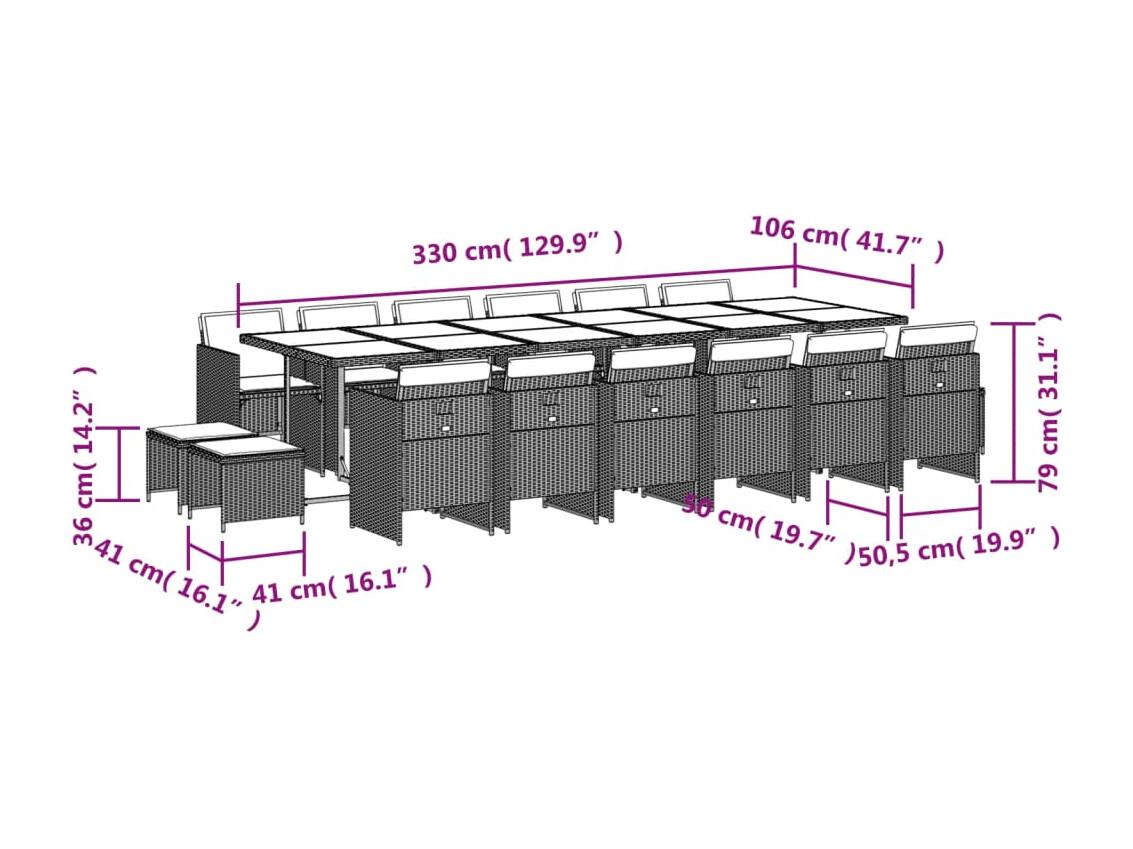 Set comedor de jardín 17 piezas con cojines ratán sintético beige