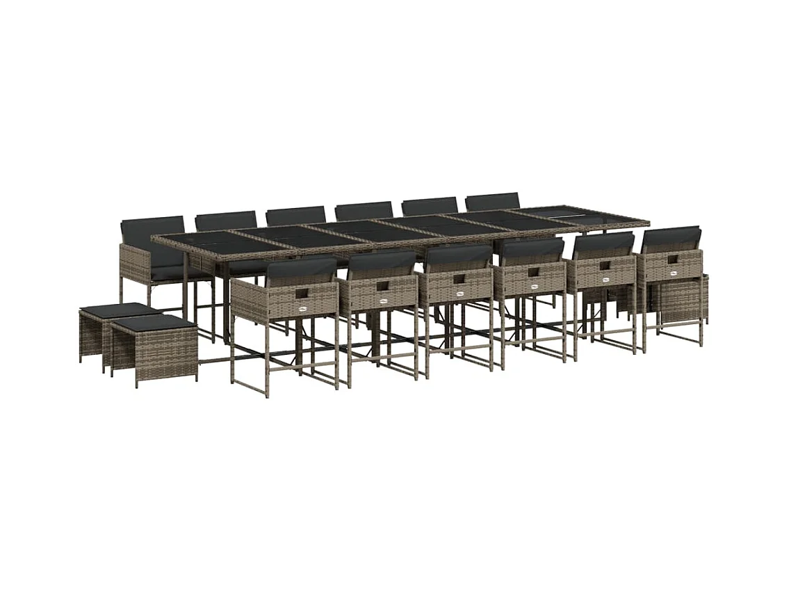 Set comedor de jardín 17 piezas y cojines ratán sintético gris