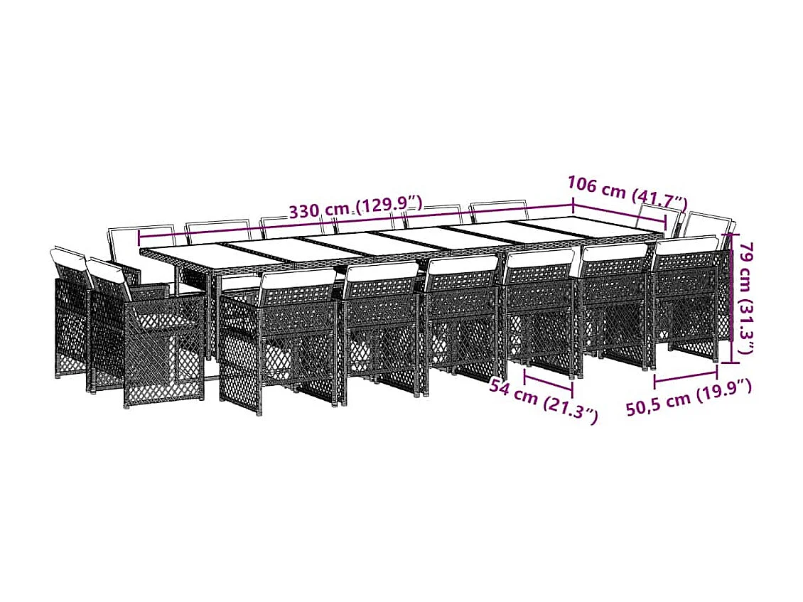 Set comedor de jardín 17 piezas y cojines ratán sintético gris