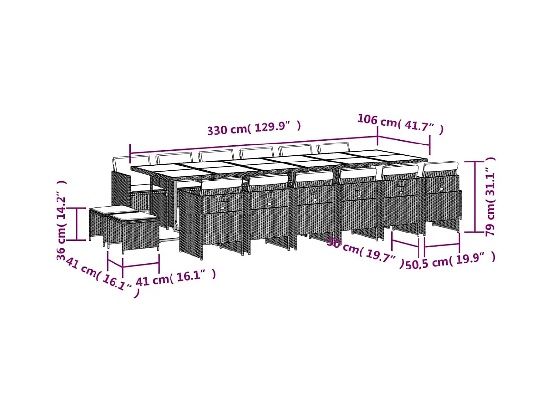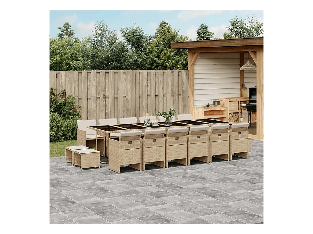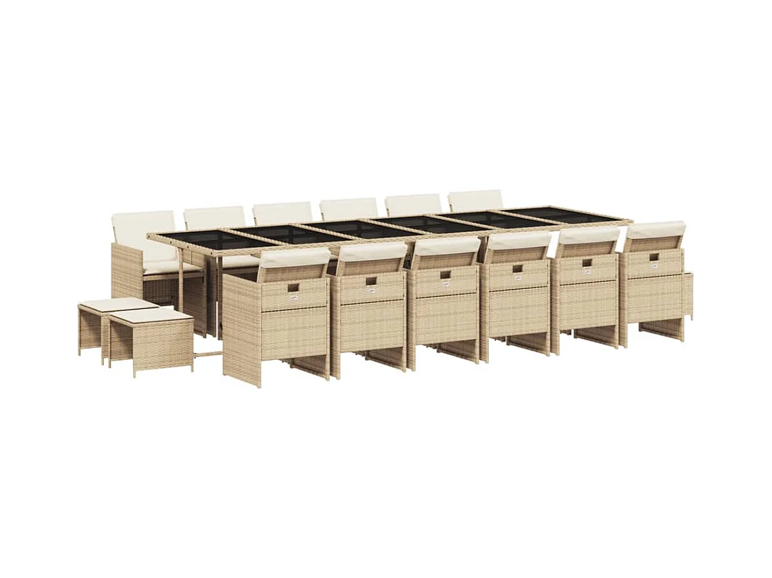 Set comedor de jardín 17 pzas con cojines ratán sintético beige