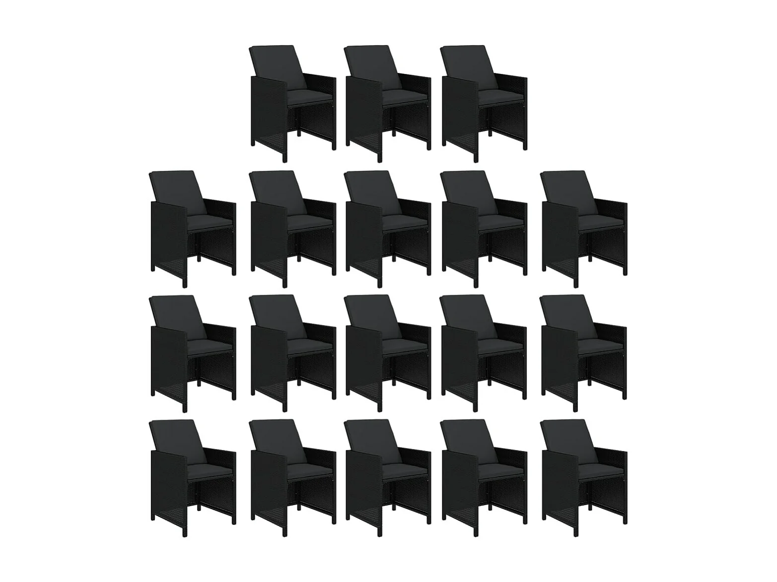 Set comedor de jardín 19 piezas con cojines ratán sintético negro