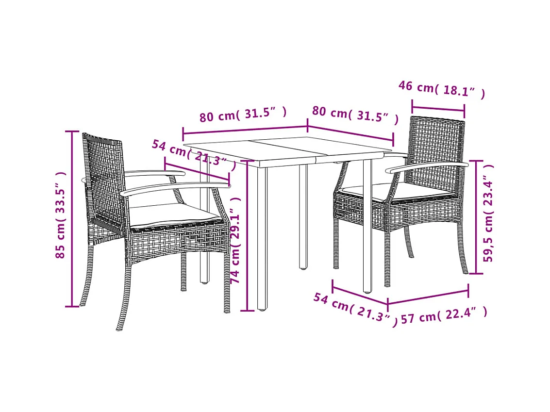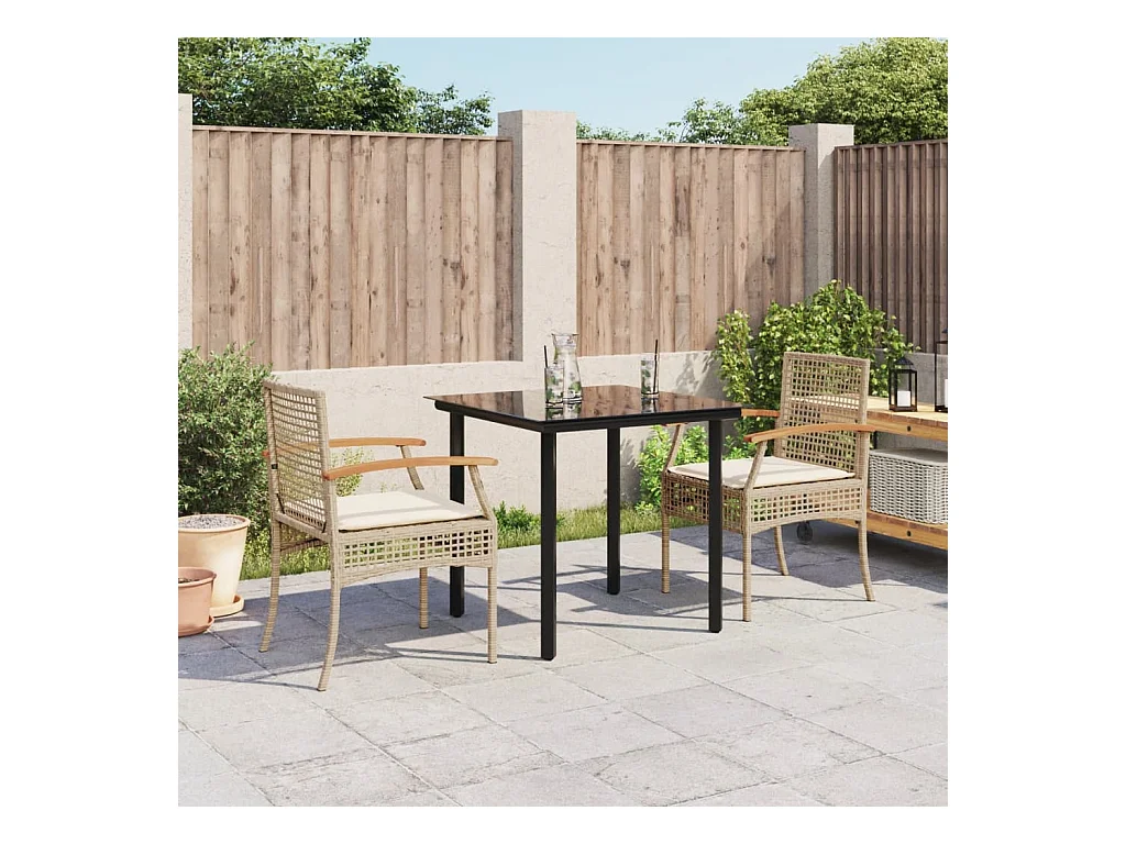 Set comedor de jardín 3 pzas con cojines ratán sintético beige
