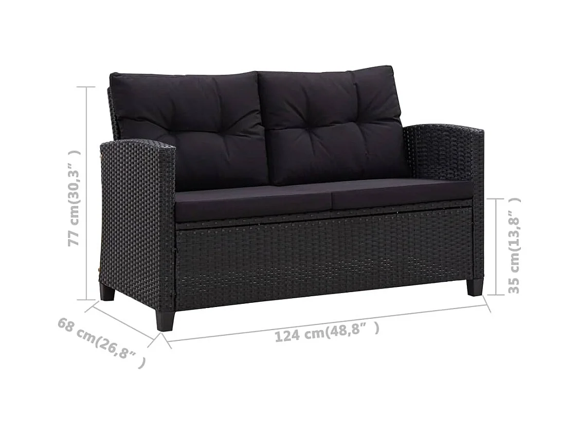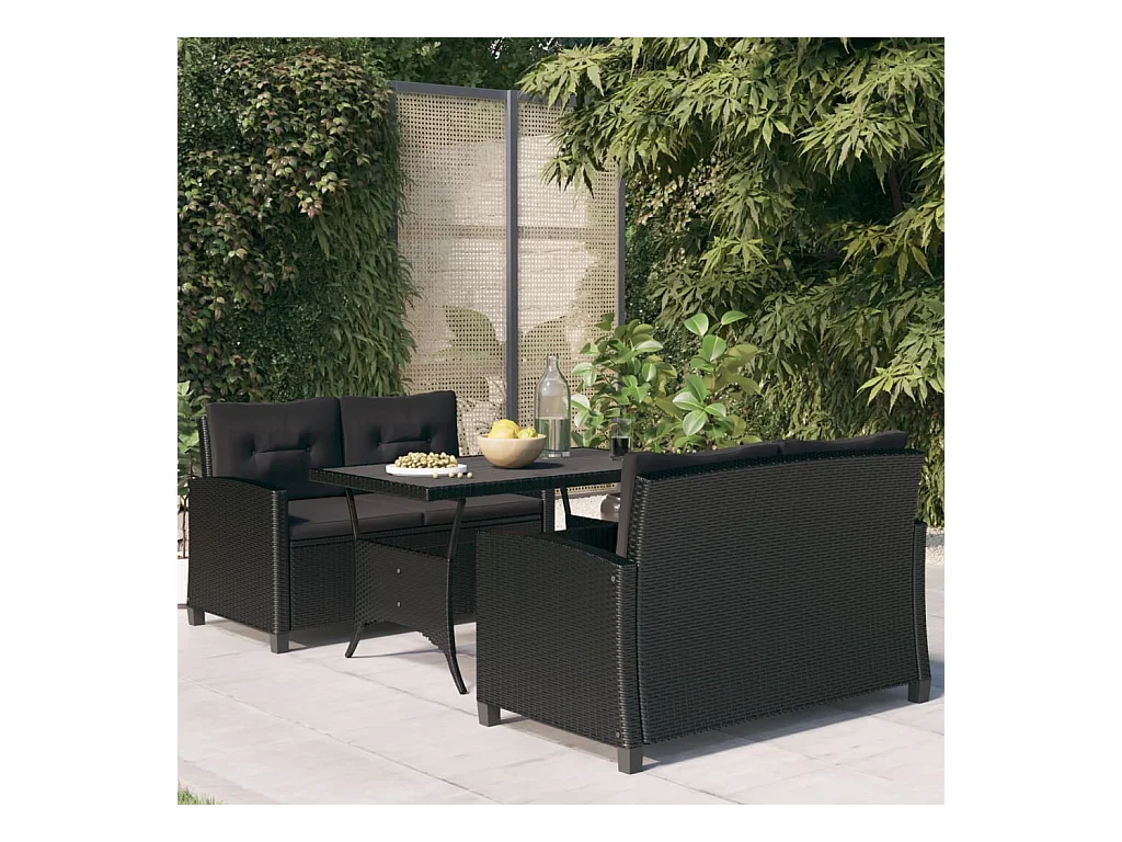 Set de sofás de jardín con cojines 3 pzas ratán sintético negro