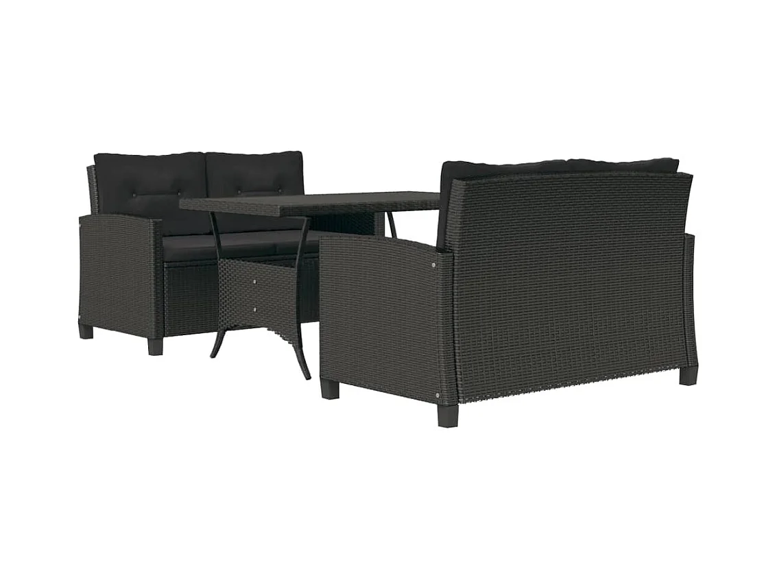 Set comedor de jardín 3 pzas con cojines ratán sintético negro