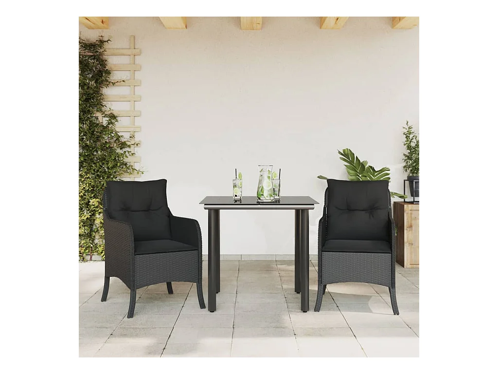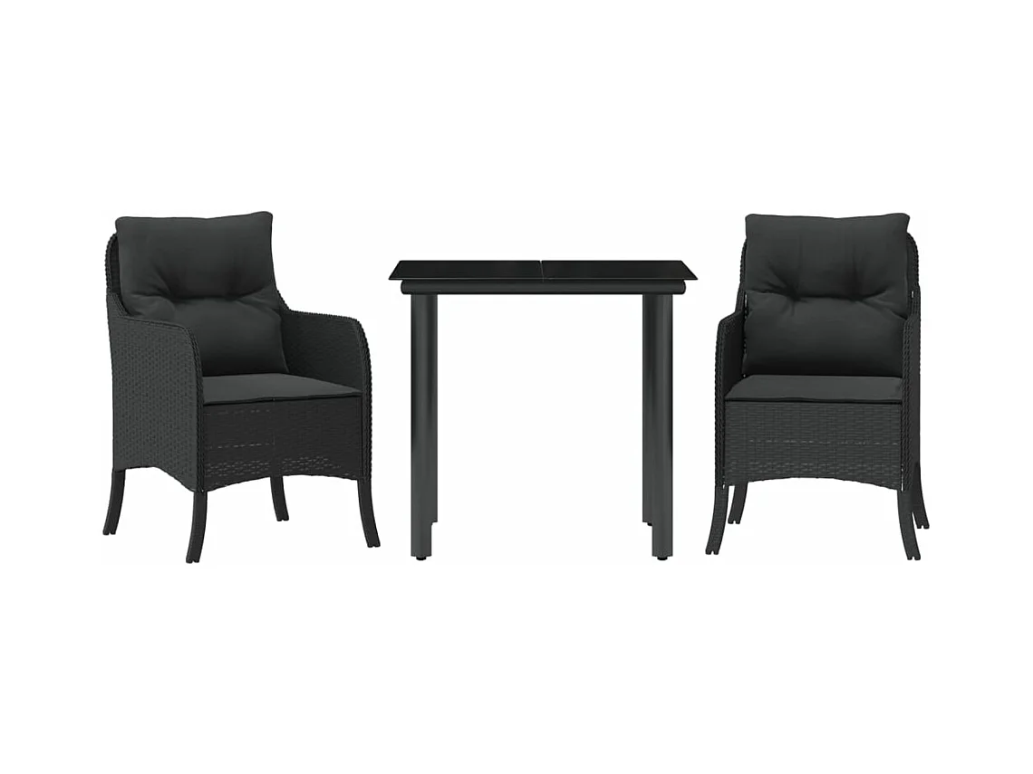 Set de comedor de jardín 3 pzas y cojines ratán sintético negro ES597651