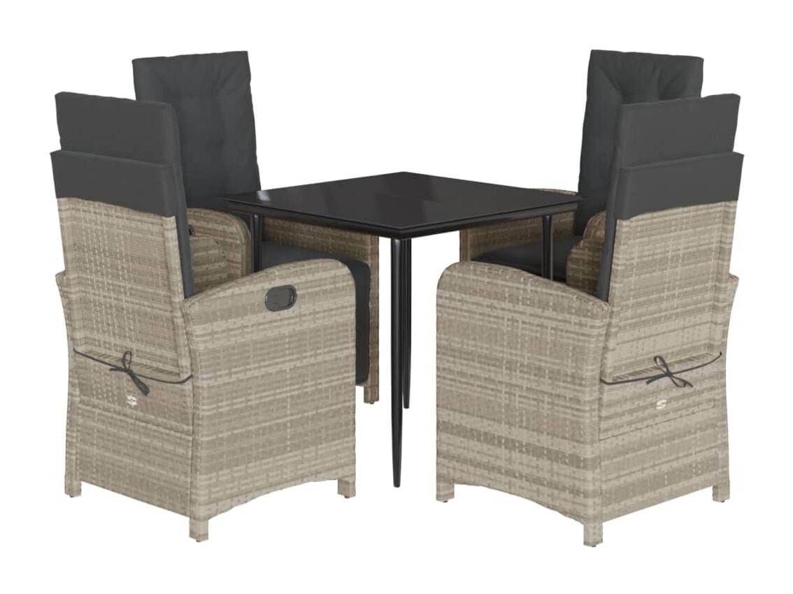 Set comedor de jardín 5 piezas cojines ratán sintético gris claro