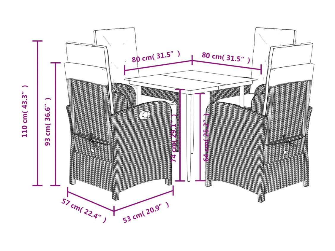 Juego de comedor para jardín de 5 piezas y cojines gris