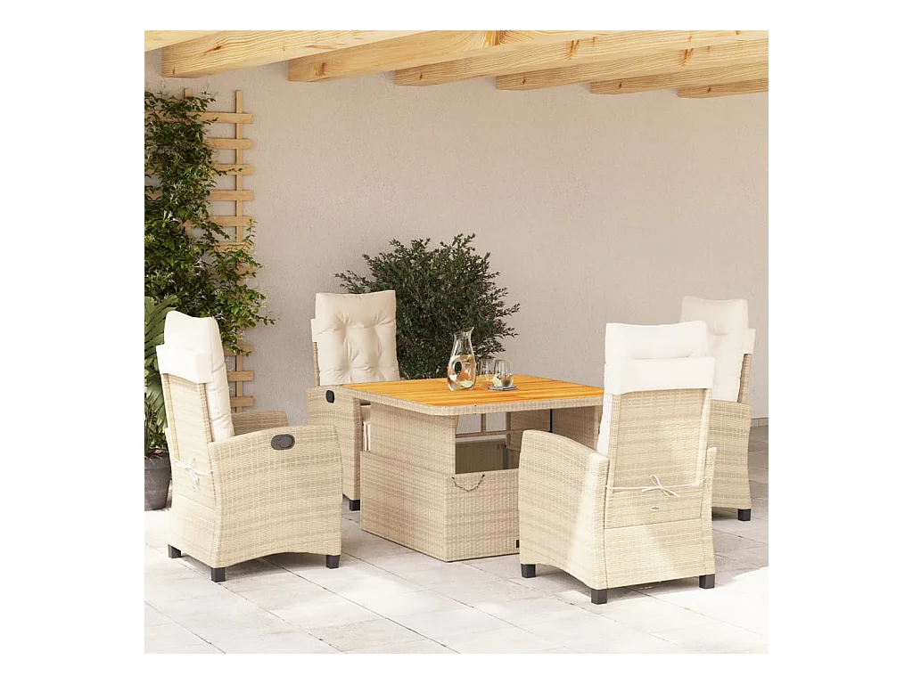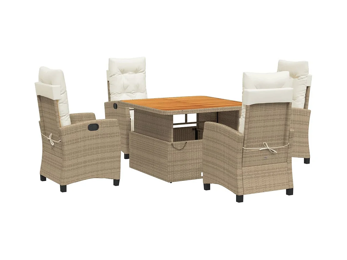 Set de comedor jardín 5 piezas con cojines ratán PE acacia beige