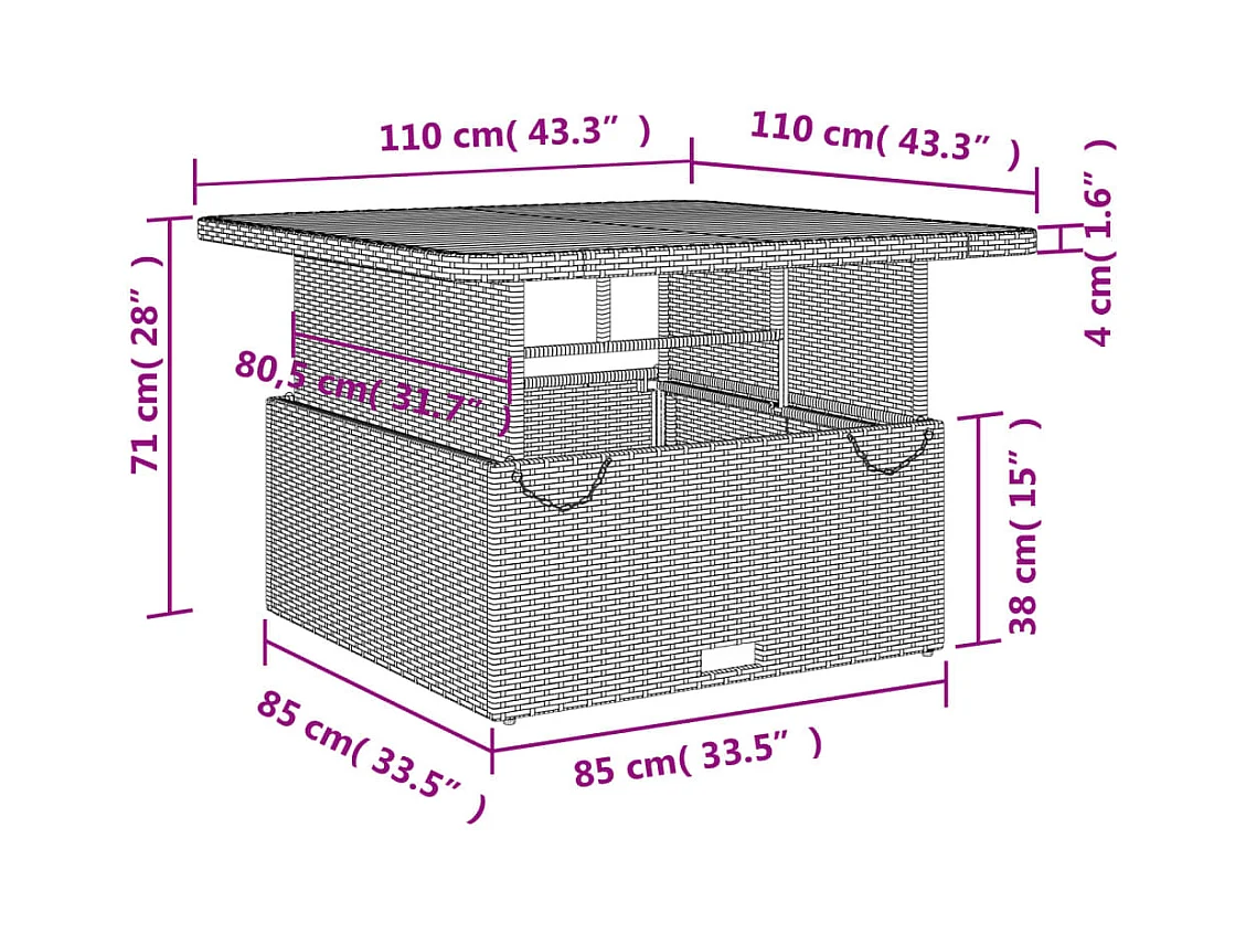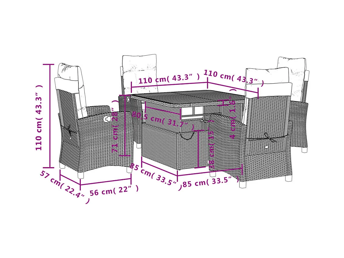 Set comedor de jardín 5 piezas con cojines ratán sintético beige