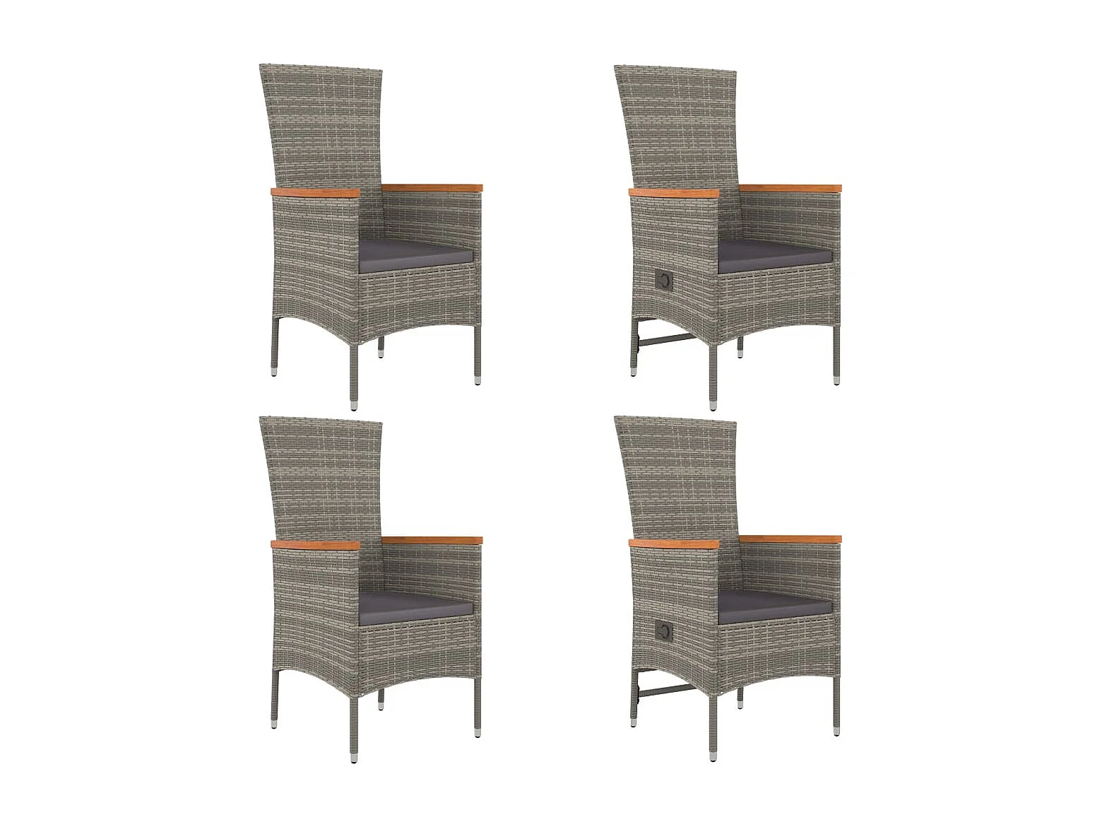 Set comedor de jardín 5 piezas con cojines ratán sintético gris