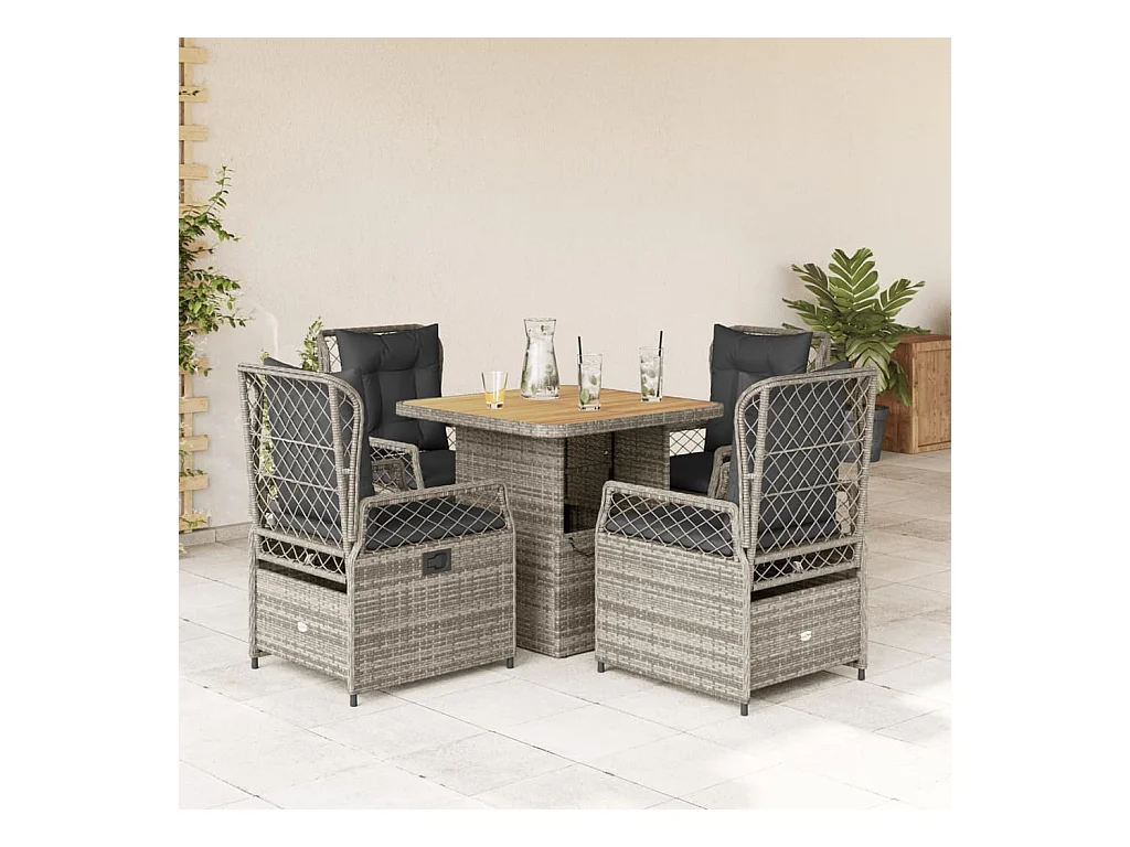 Set comedor de jardín 5 piezas cojines ratán sintético gris claro