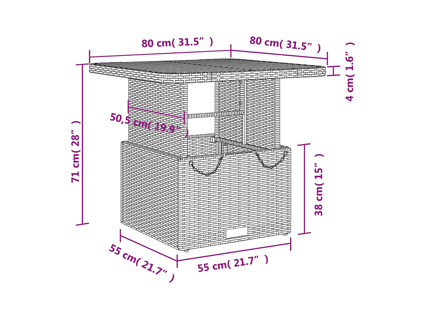 Comedor de jardín 5 pzas ratán sintético vidrio templado gris YOE42179