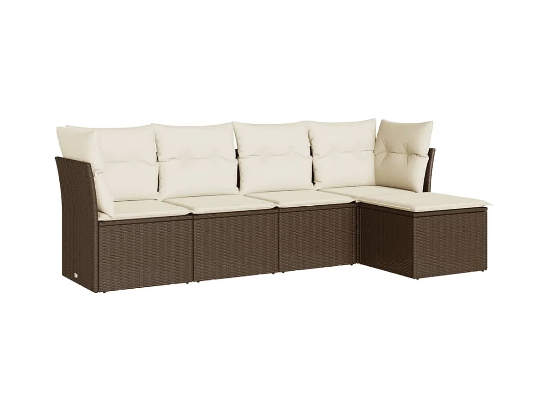 Set de sofás de jardín 4 pzas y cojines ratán sintético marrón