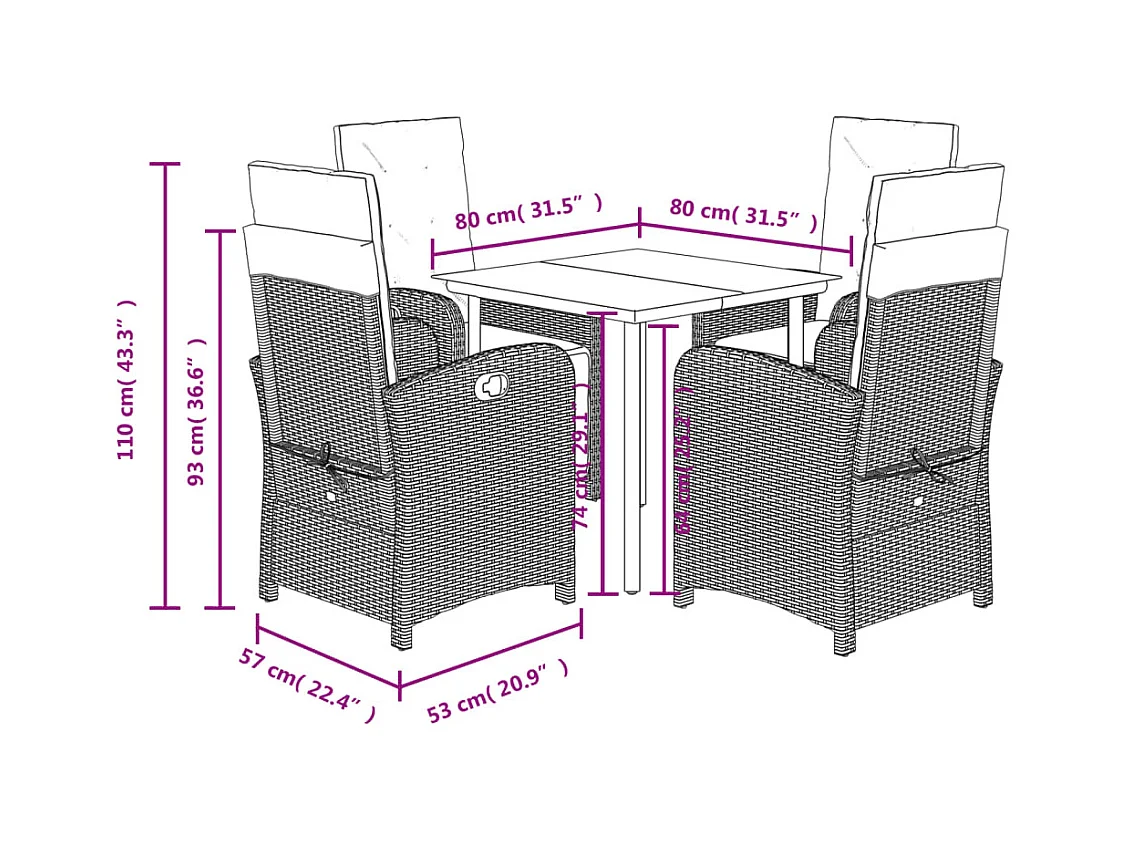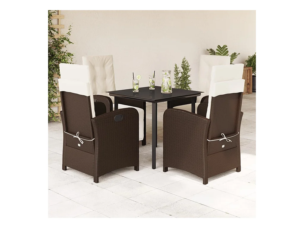 Set comedor de jardín 5 piezas y cojines ratán sintético marrón