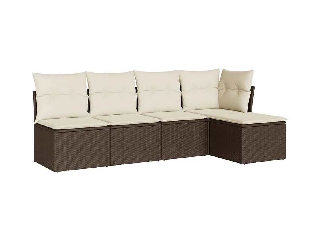 Set de sofás de jardín 4 pzas y cojines ratán sintético marrón
