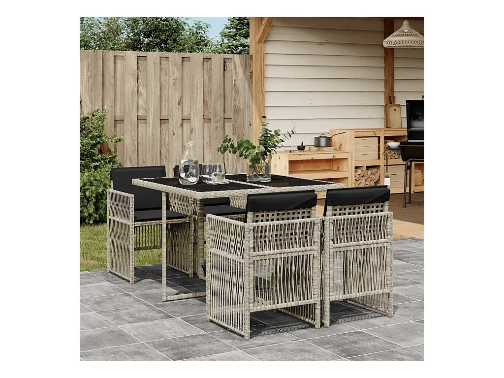 Set comedor de jardín 5 pzas cojines ratán sintético gris claro ES776840