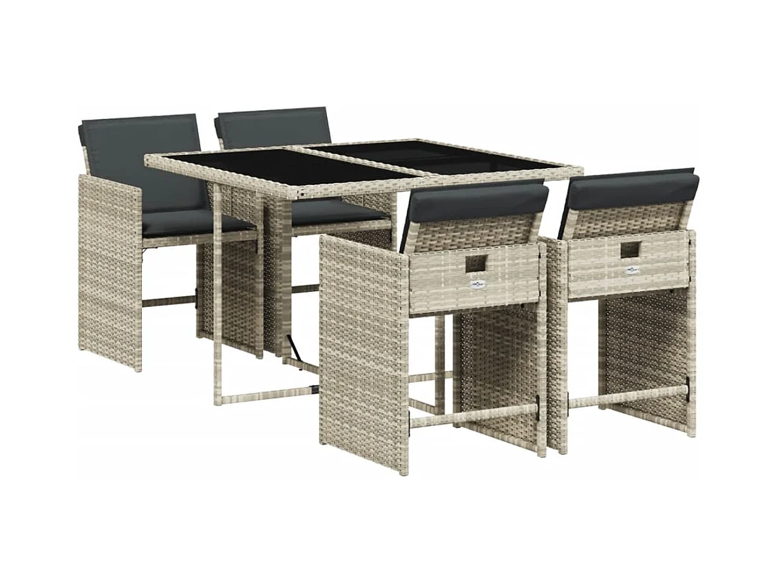 Set comedor de jardín 5 pzas cojines ratán sintético gris claro ES776840