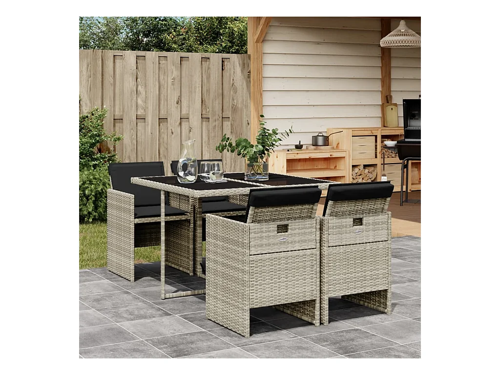 Set comedor de jardín 5 pzas cojines ratán sintético gris claro ES776840
