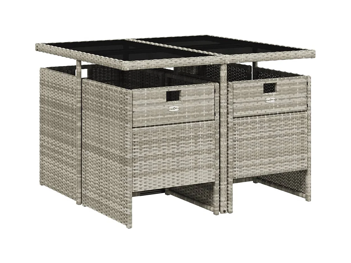 Set comedor jardín 5 pzas y cojines ratán PE vidrio gris claro ES279916