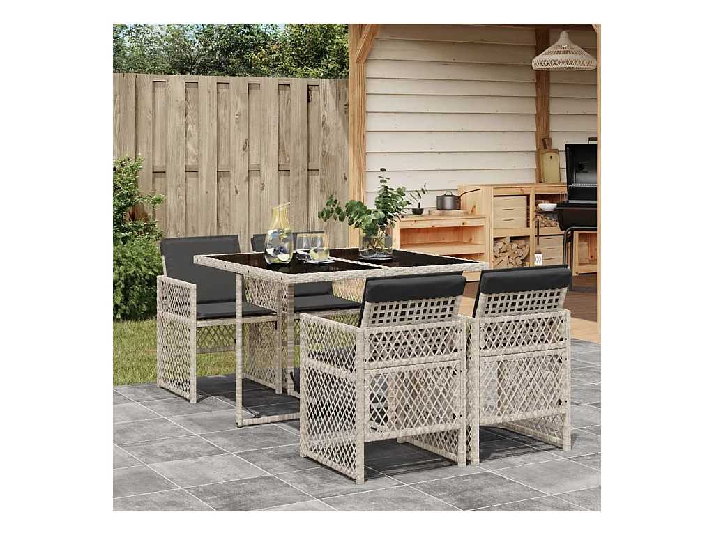 Set comedor de jardín 5 pzas cojines ratán sintético gris claro ES776840