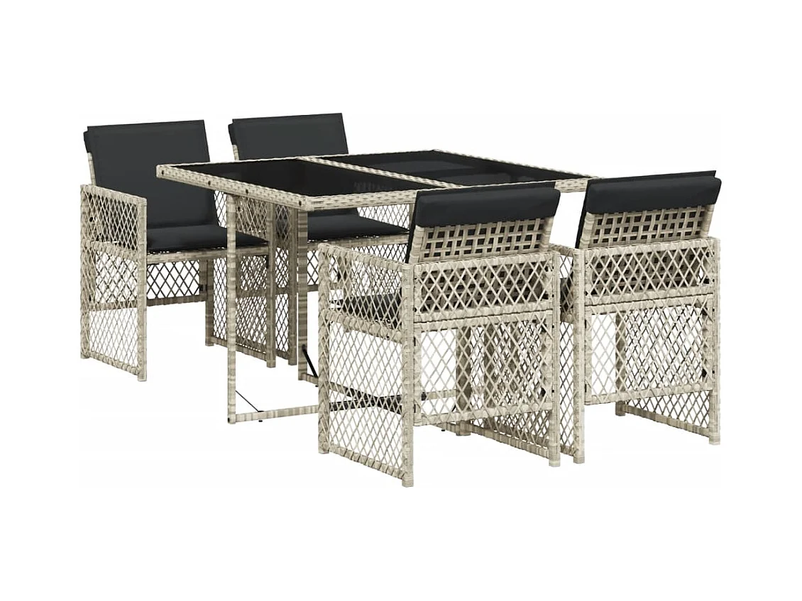 Set comedor de jardín 5 pzas cojines ratán sintético gris claro ES682006