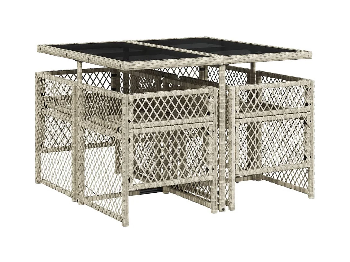 Set comedor jardín 5 pzas y cojines ratán PE vidrio gris claro ES279916