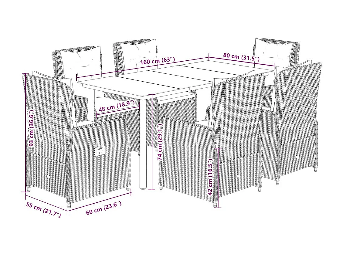 Set comedor de jardín 7 piezas con cojines ratán sintético beige