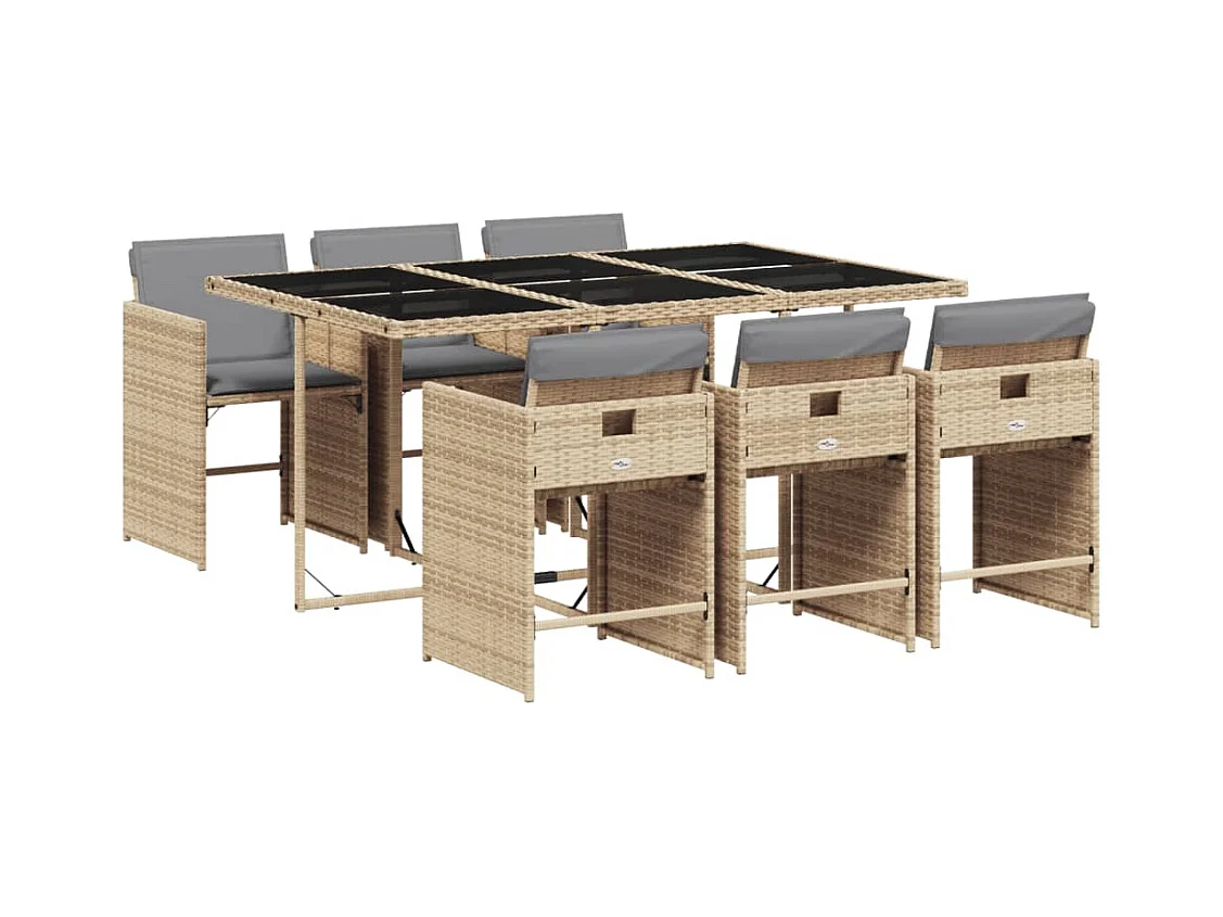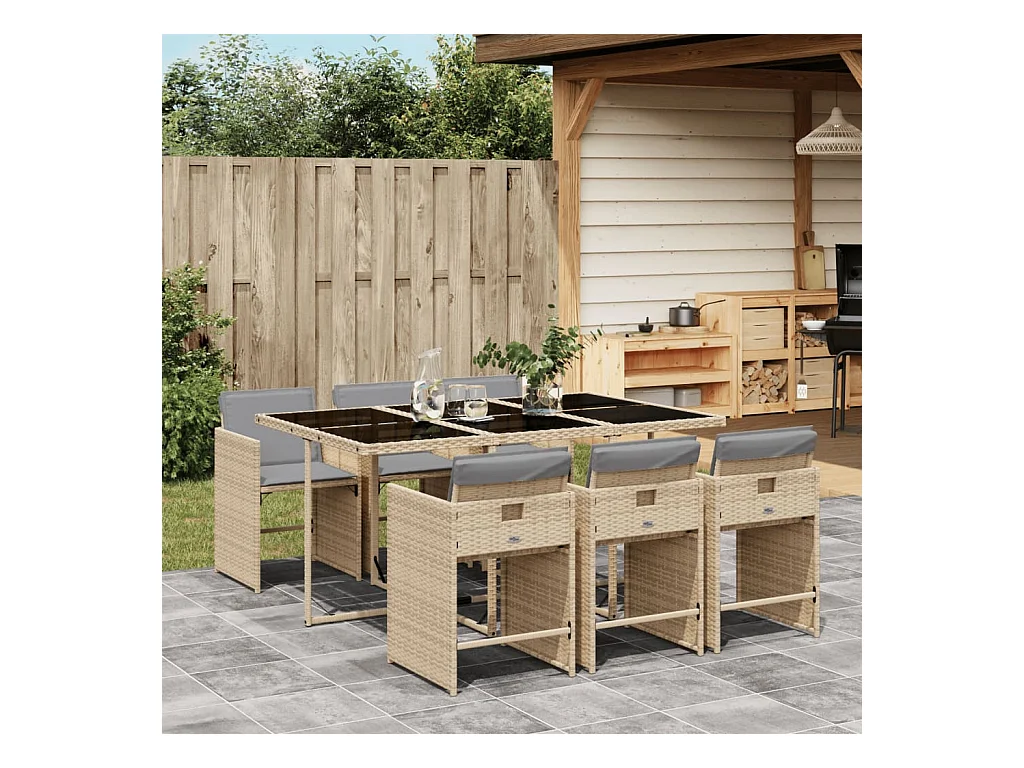 Set comedor de jardín 7 piezas con cojines ratán sintético beige