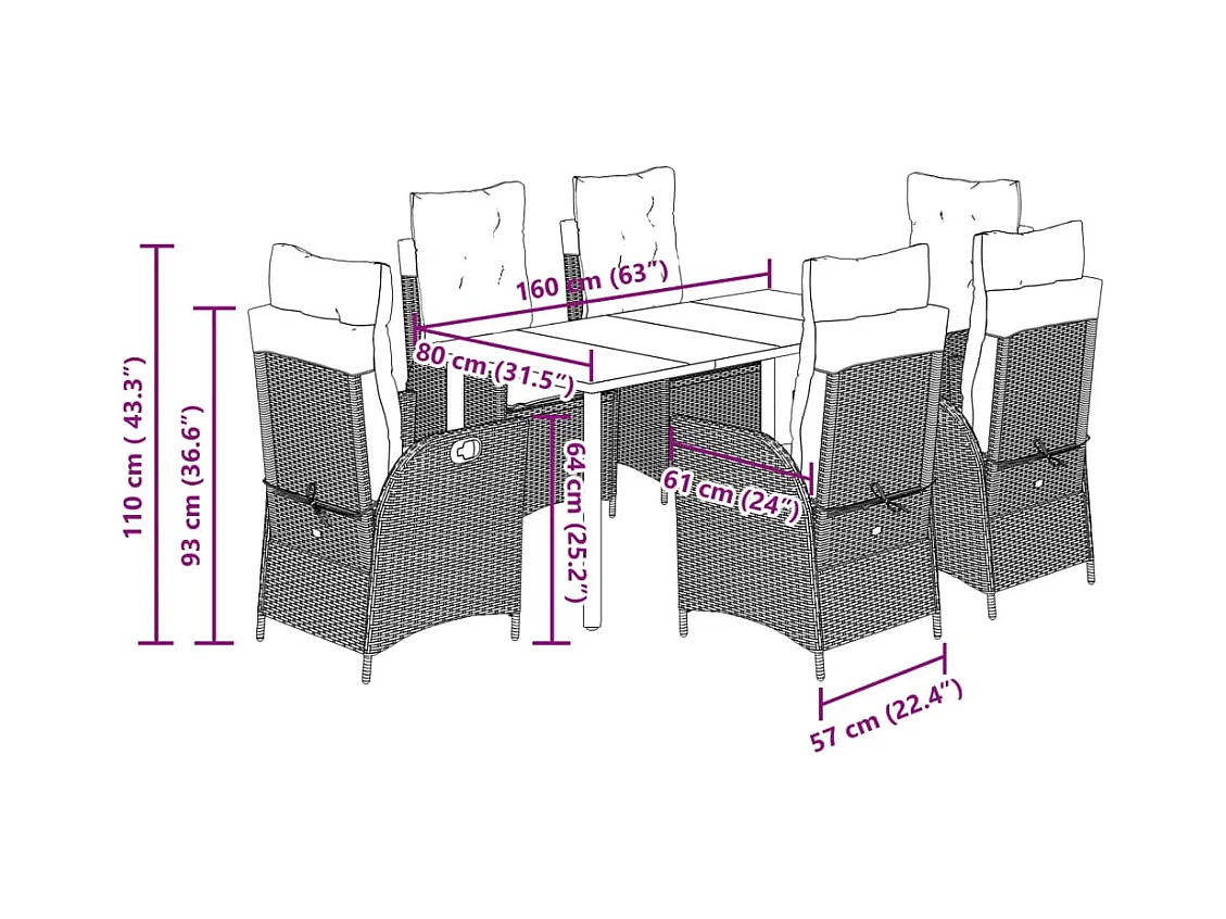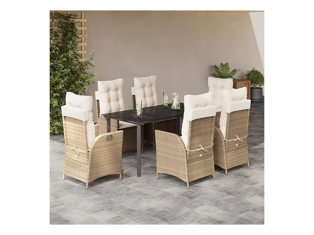 Set comedor de jardín 7 piezas con cojines ratán sintético beige