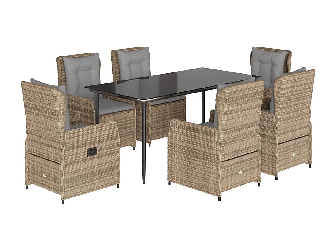 Set comedor de jardín 7 piezas con cojines ratán sintético beige