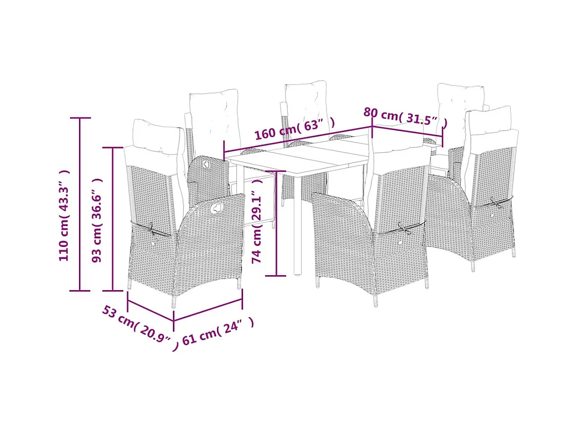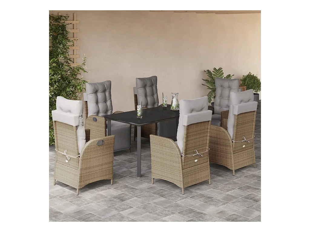 Set comedor de jardín 7 piezas con cojines ratán sintético beige