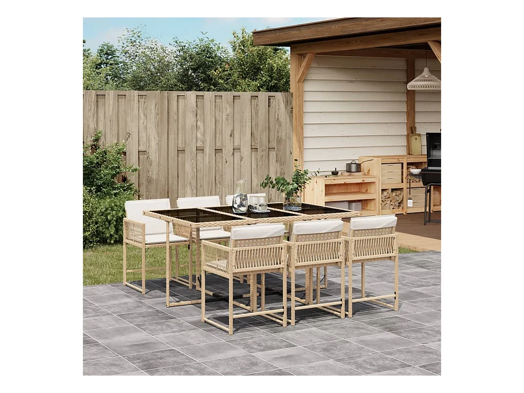 Set comedor de jardín 7 pzas con cojines ratán sintético beige