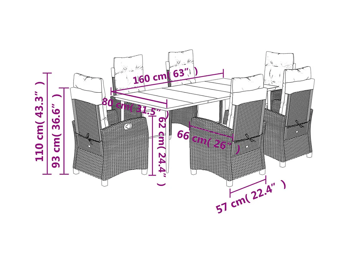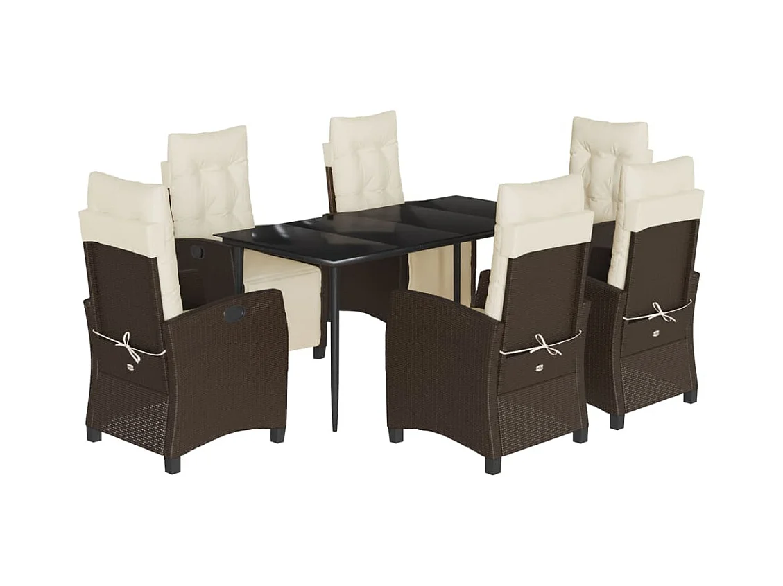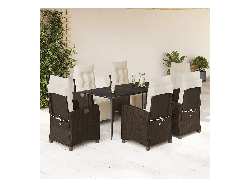 Set comedor de jardín 7 pzas con cojines ratán sintético marrón