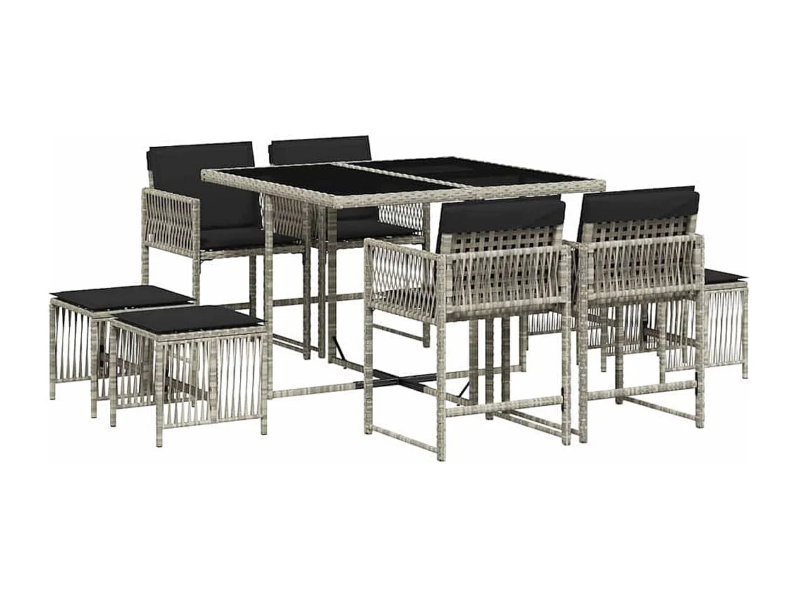 Set comedor de jardín 9 piezas cojines ratán sintético gris claro