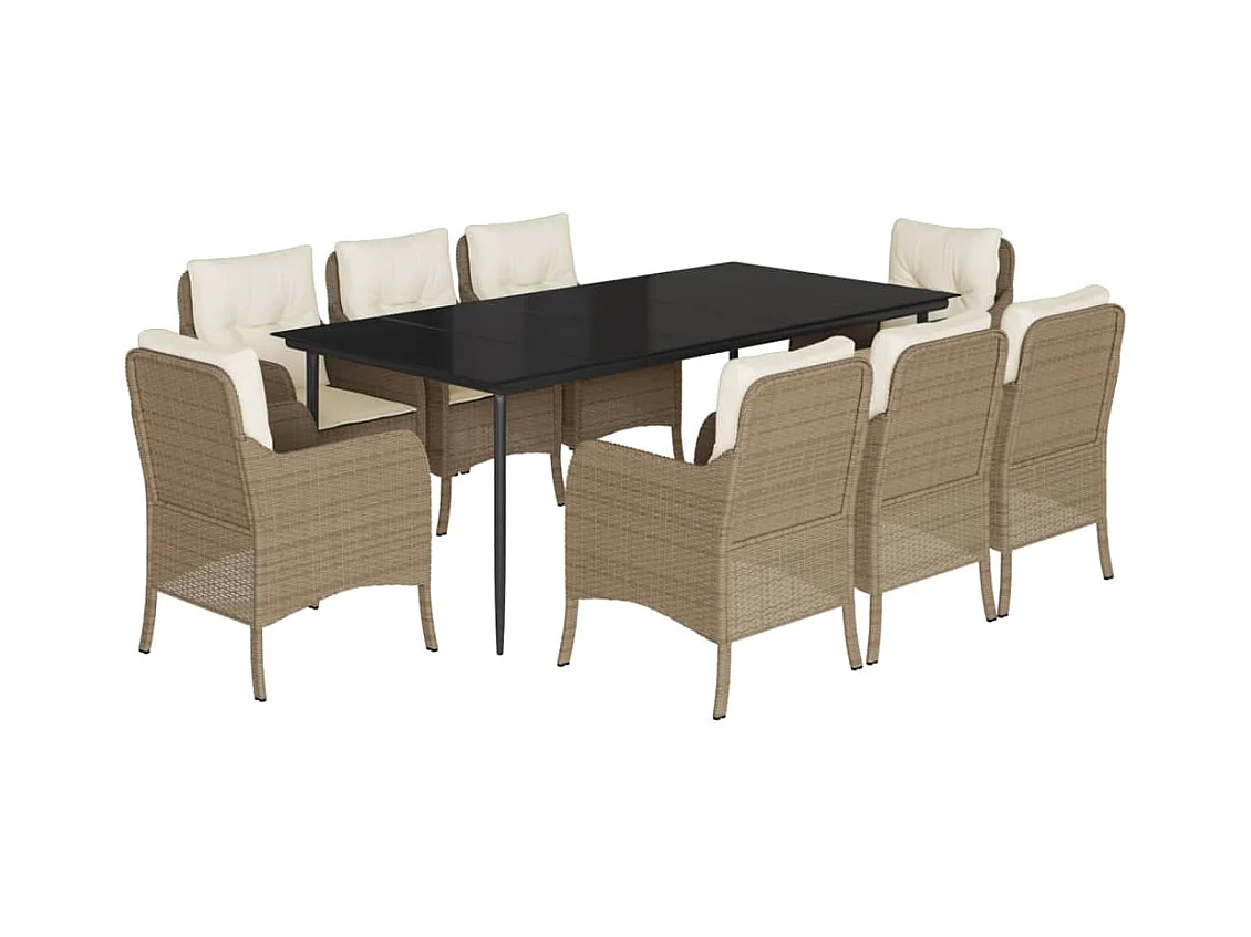 Set comedor de jardín 9 piezas con cojines ratán sintético beige