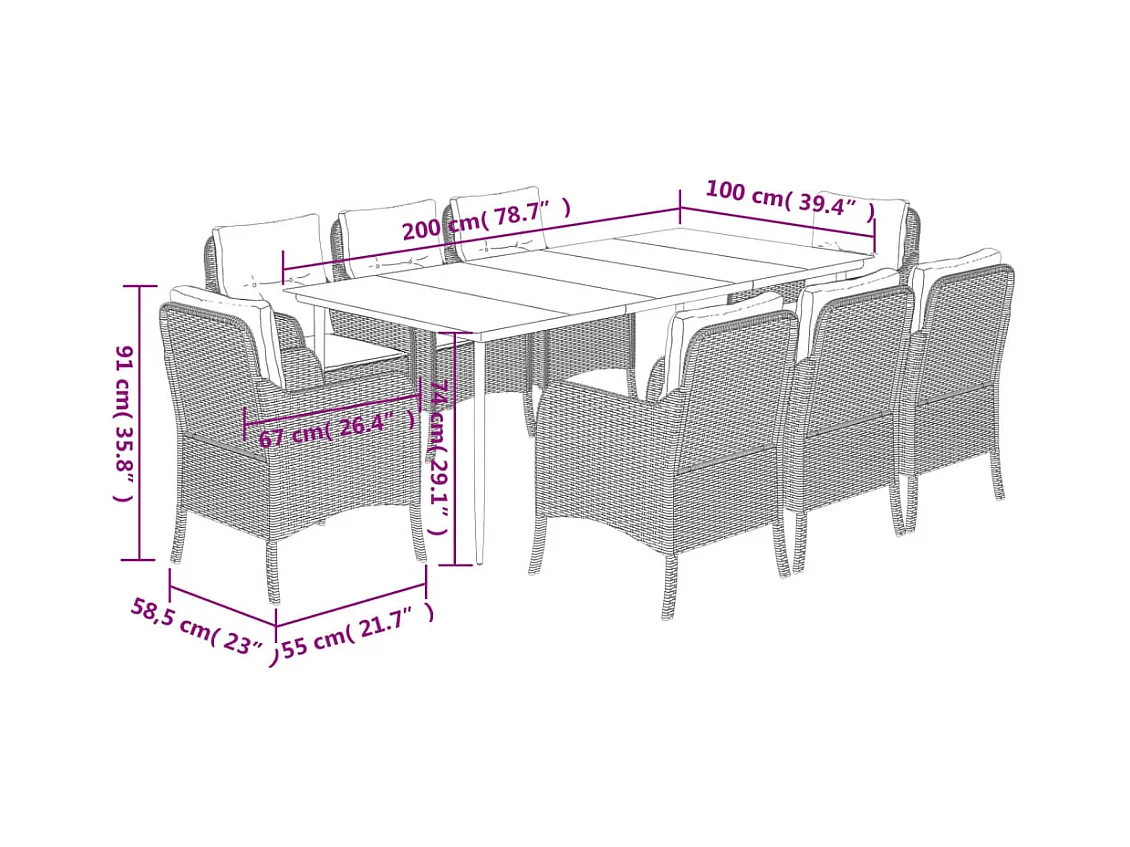 Conjunto de mesa y sillas para jardín rectangular