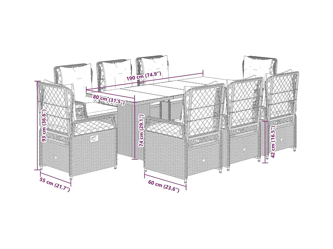 Set comedor de jardín 9 piezas con cojines ratán sintético beige