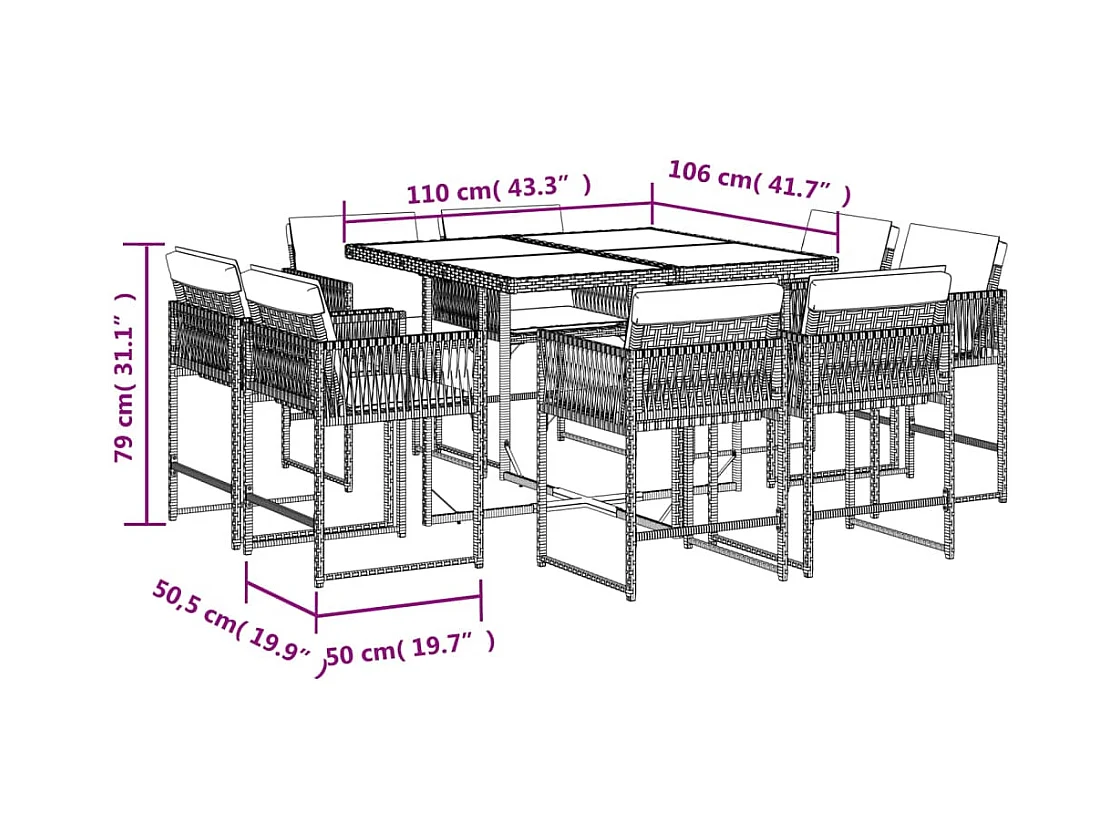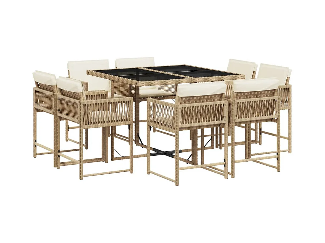Set comedor de jardín 9 piezas con cojines ratán sintético beige