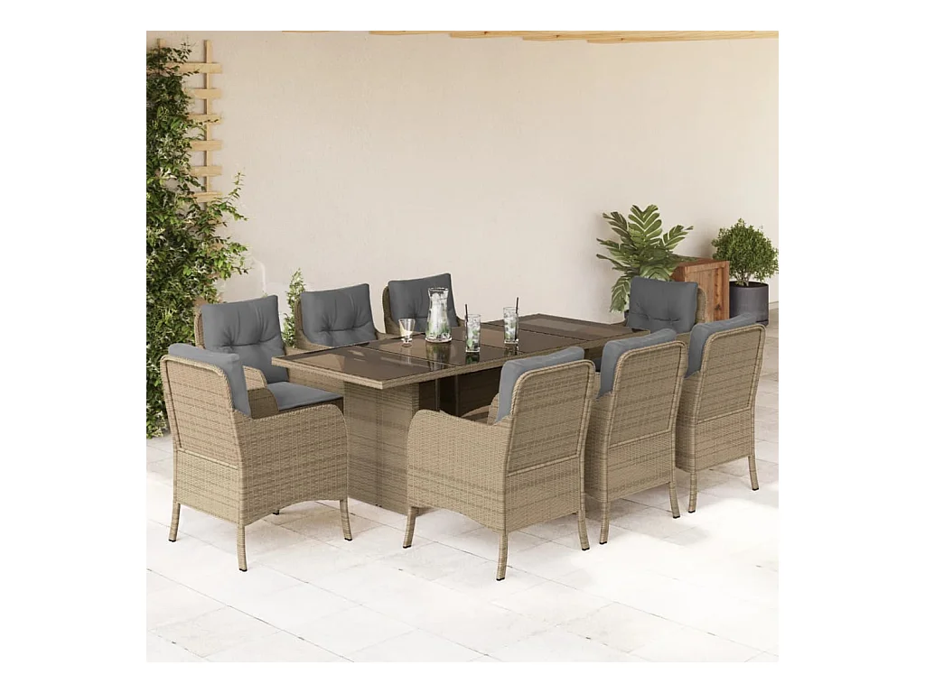 Set comedor de jardín 9 piezas con cojines ratán sintético beige