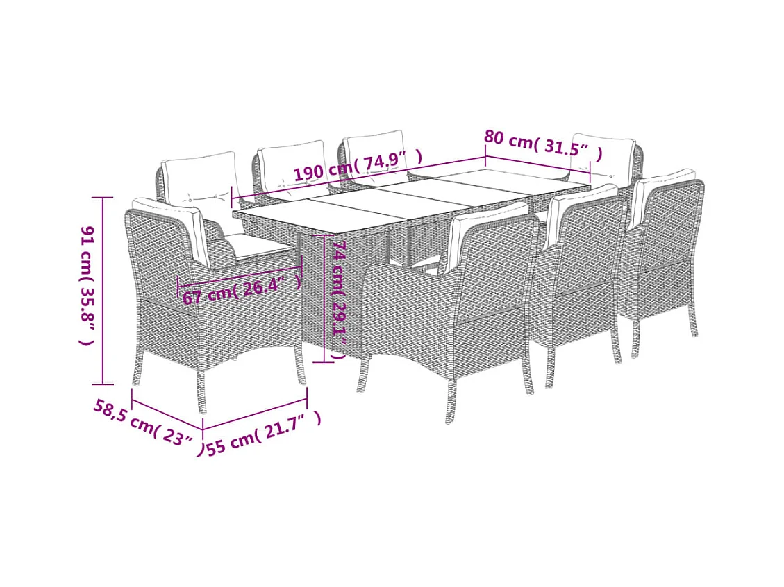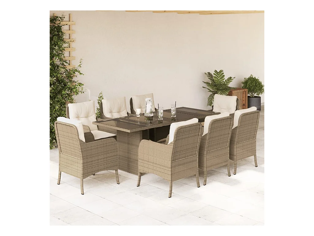 Set comedor de jardín 9 piezas con cojines ratán sintético beige
