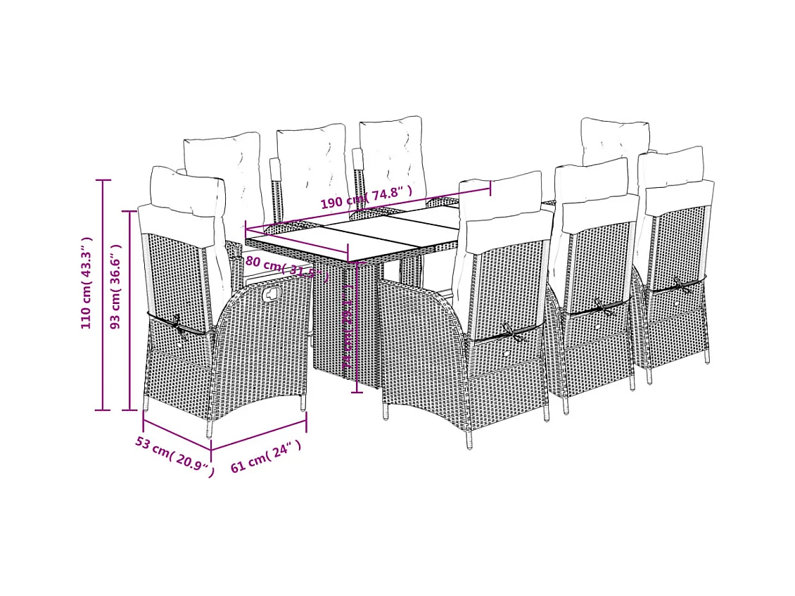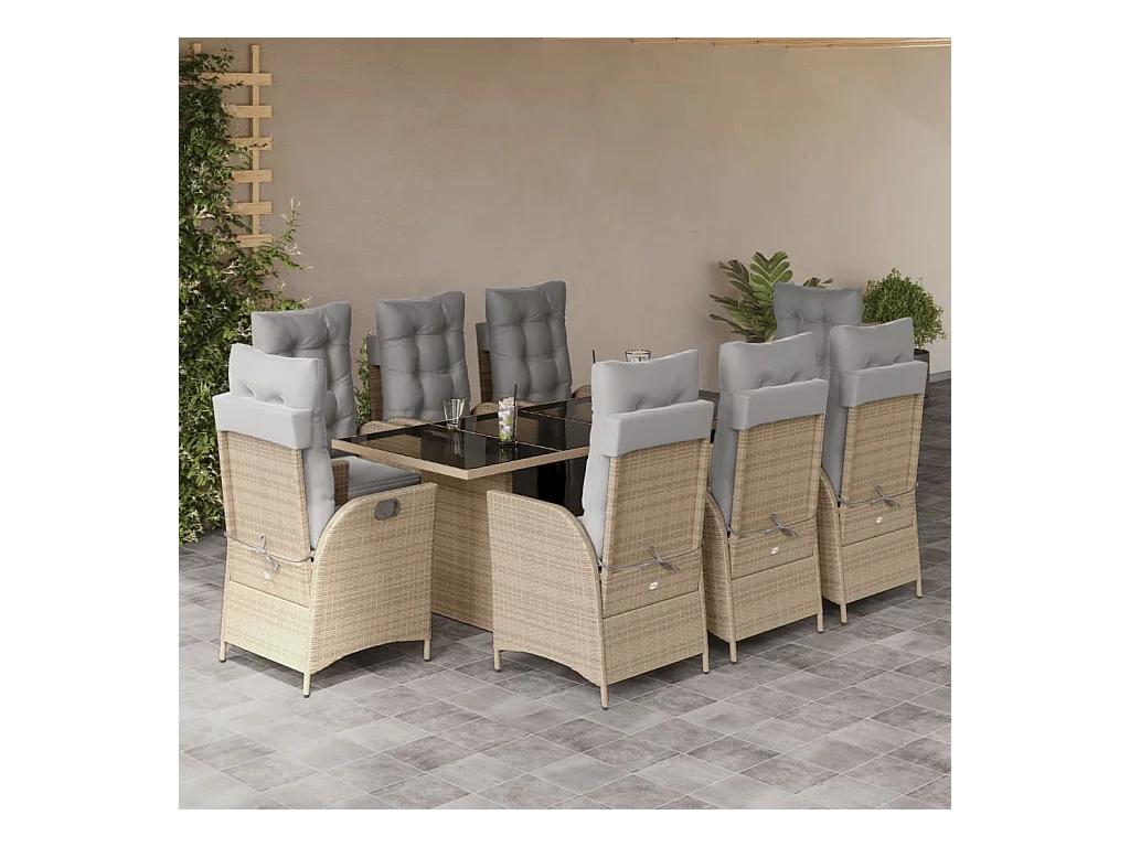 Set comedor de jardín 9 pzas con cojines ratán sintético beige