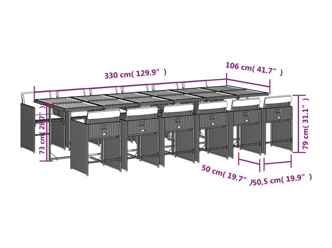 Set comedor de jardín con cojines 13 piezas ratán sintético negro