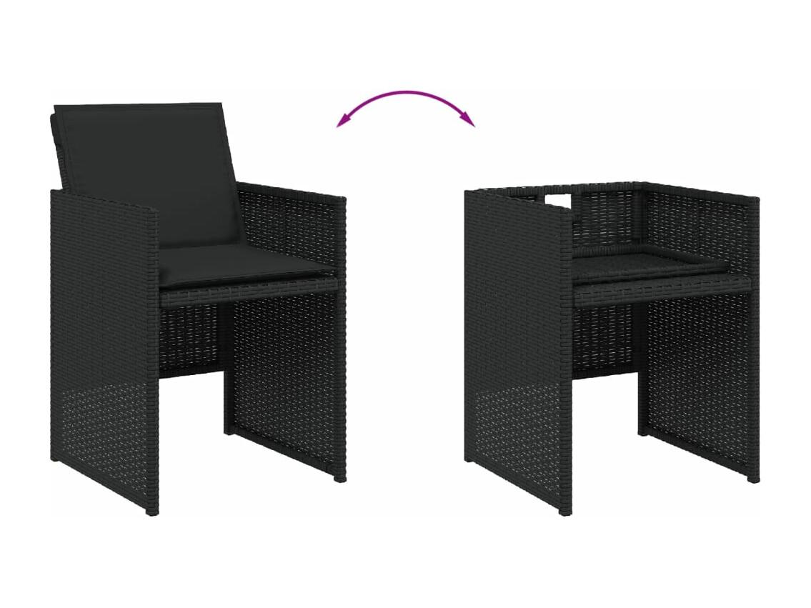 Set comedor de jardín con cojines 13 piezas ratán sintético negro